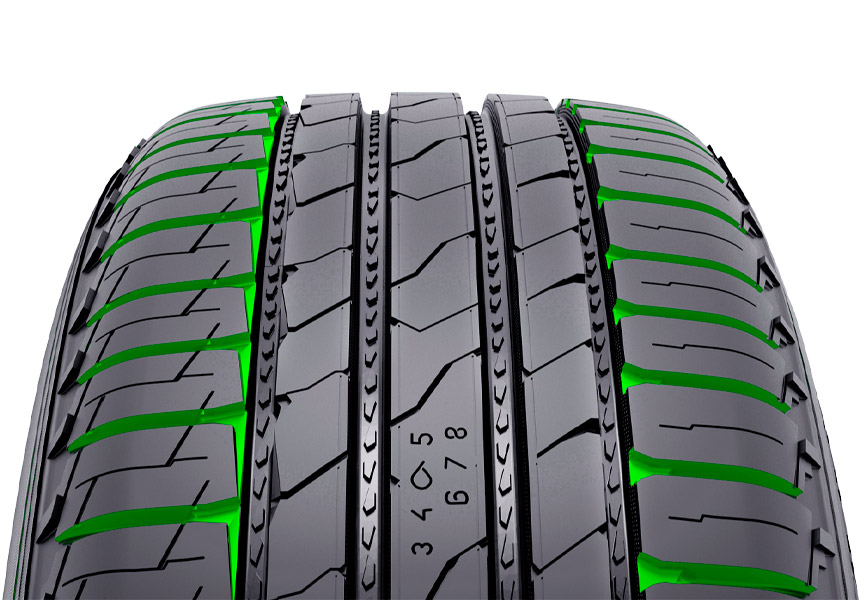 Удалители камней, находящиеся в окружных водоотводных каналах, защищают от застревания маленьких остроконечных камней между элементами протектора. Это повышает долговечность летних покрышек Nordman S2. Высокий уровень износостойкости шин Nokian Tyres Nordman S2 SUV была достигнута за счет применения инновационного состава резиновой смеси. Компаунд шин данной модели эффективно противостоит порезам, ударам, а также последствиям попадания тяжеловесного автомобиля в выбоины.