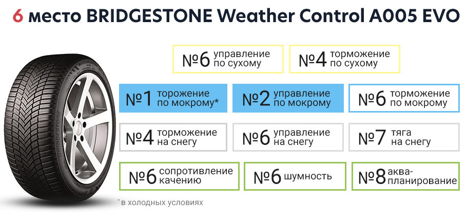 6 место. BRIDGESTONE Weather Control A005 EVO